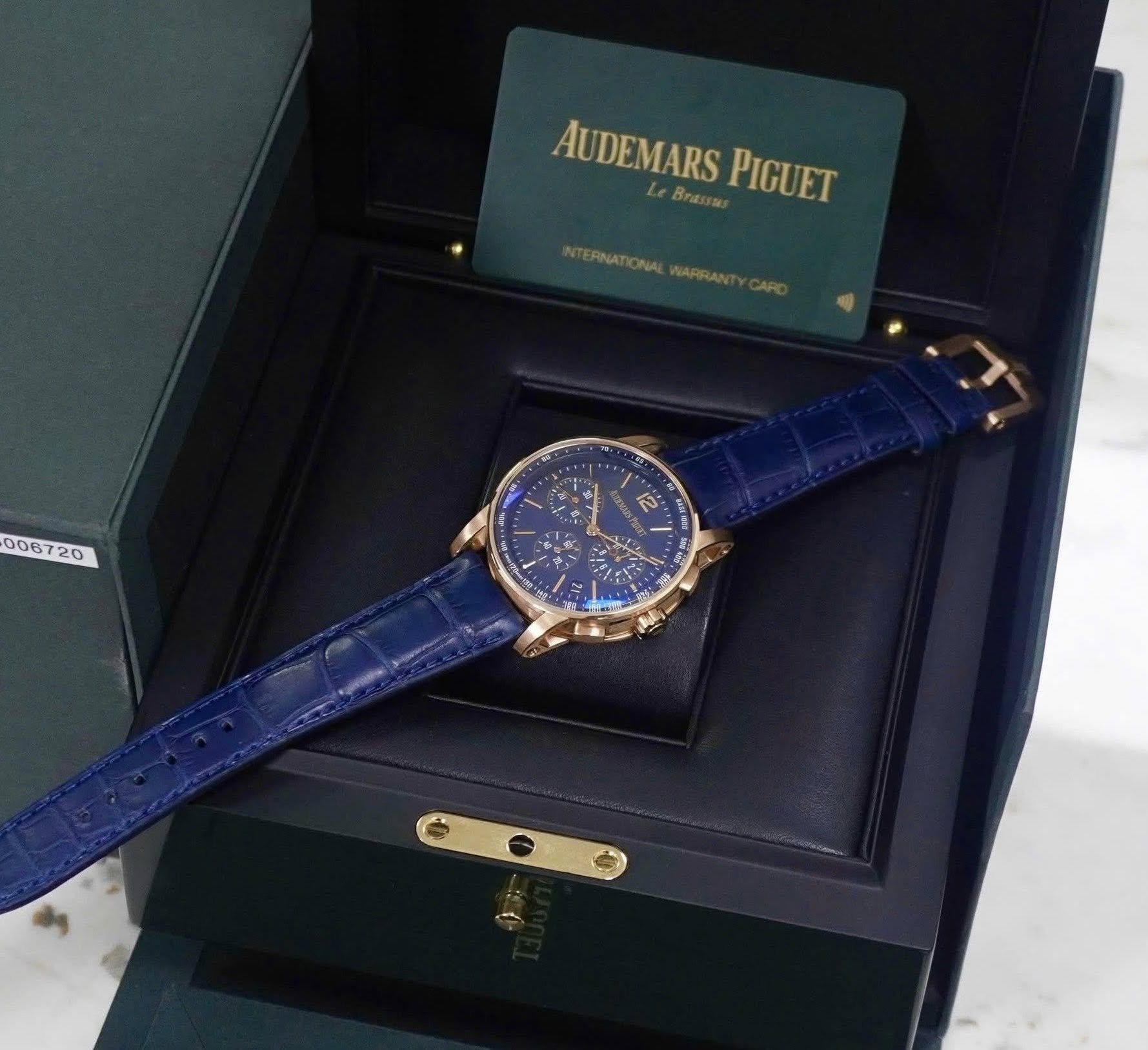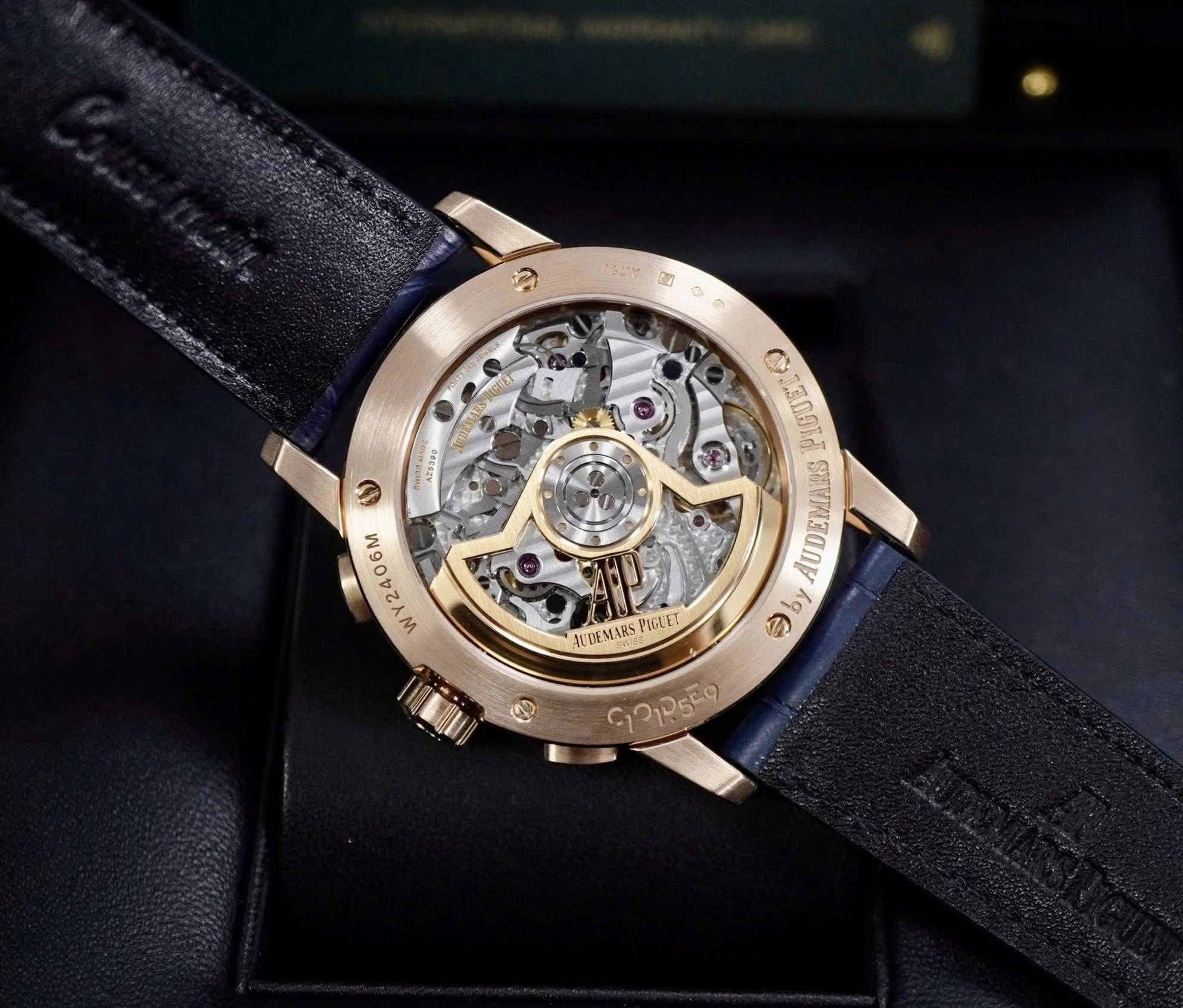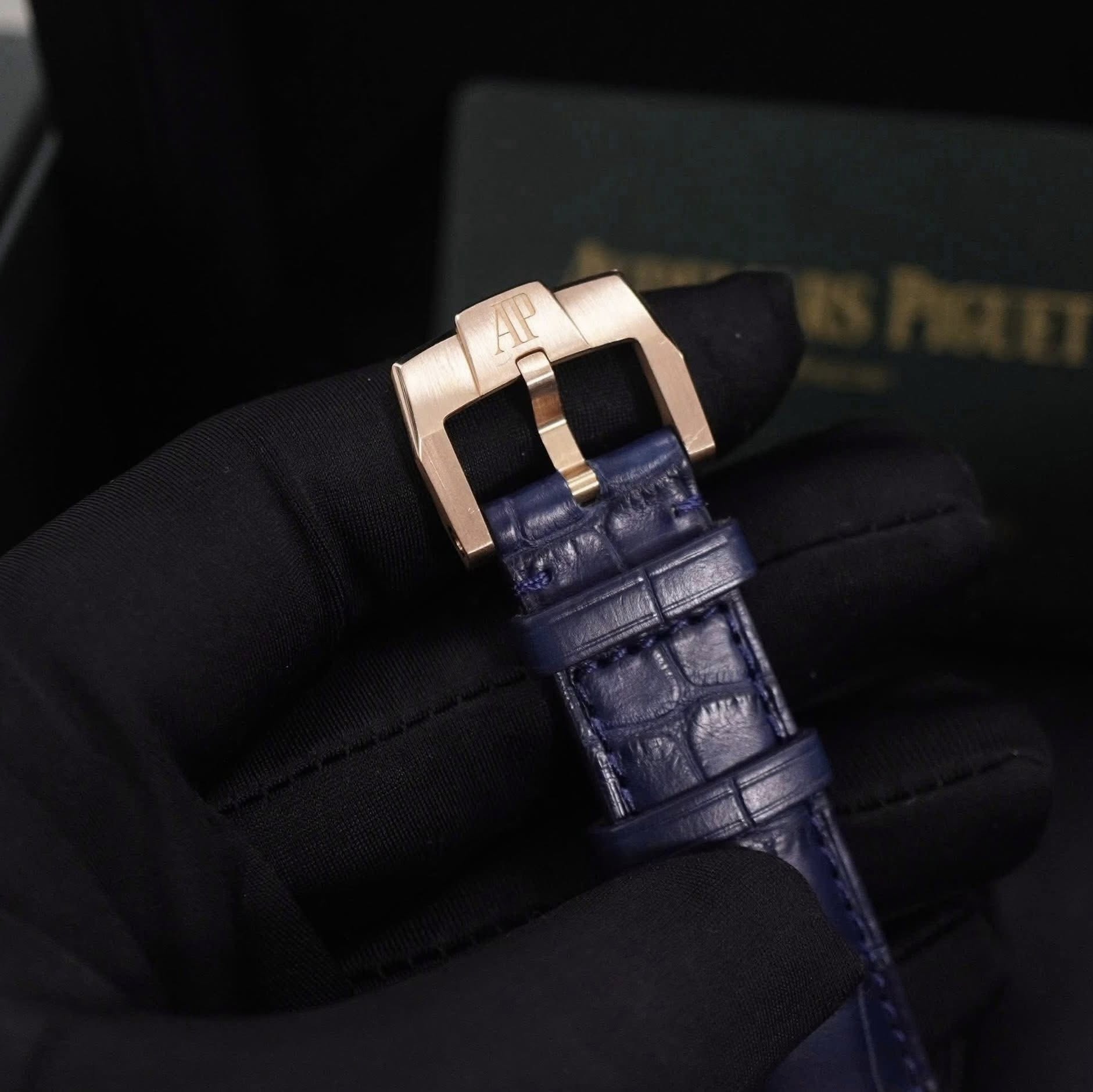Bên trong là bộ máy automatic in-house với chức năng chronograph, đảm bảo độ chính xác cao cùng hiệu năng ổn định – đúng với tiêu chuẩn chế tác khắt khe của Audemars Piguet.