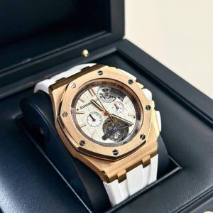 Audemars Piguet Royal Oak Offshore 26540OR.OO.A010CA.01 là một tuyệt tác haute horlogerie kết hợp giữa thiết kế thể thao mạnh mẽ của dòng Royal Oak Offshore và cơ cấu Tourbillon phức tạp bậc nhất trong ngành chế tác đồng hồ. Mẫu đồng hồ này thể hiện đỉnh cao kỹ thuật và nghệ thuật hoàn thiện của Audemars Piguet.