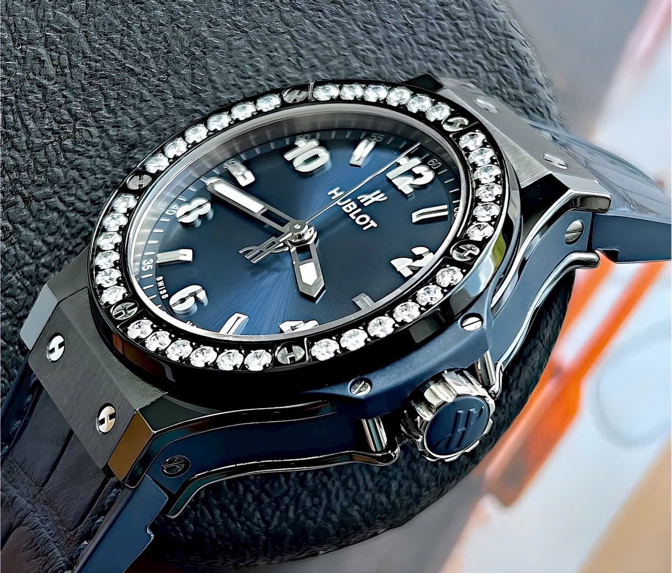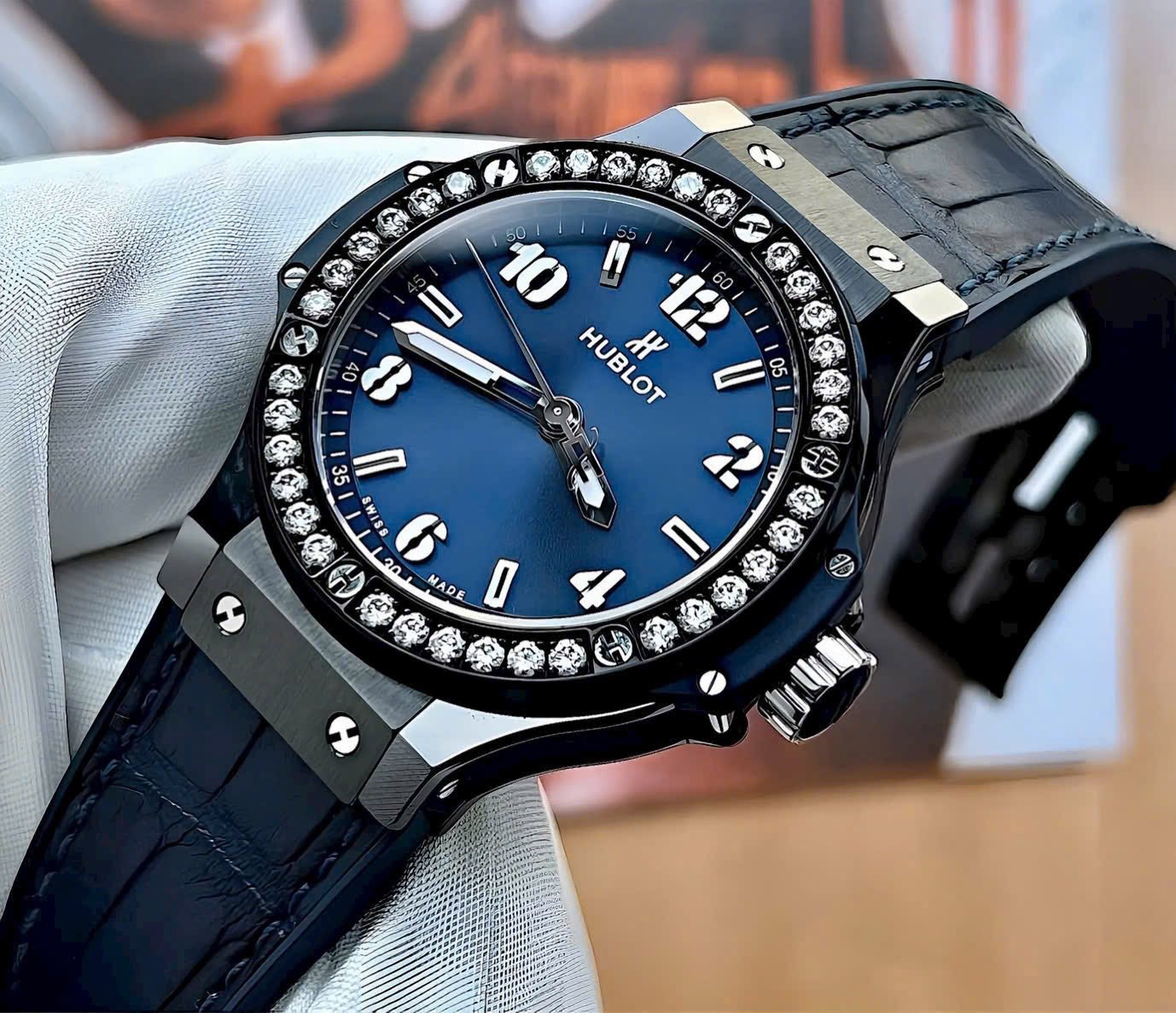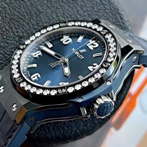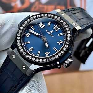 Hublot Big Bang Ceramic Blue Diamonds 38mm là lựa chọn hoàn hảo cho những ai muốn kết hợp giữa phong cách thể thao và sự xa xỉ nổi bật.