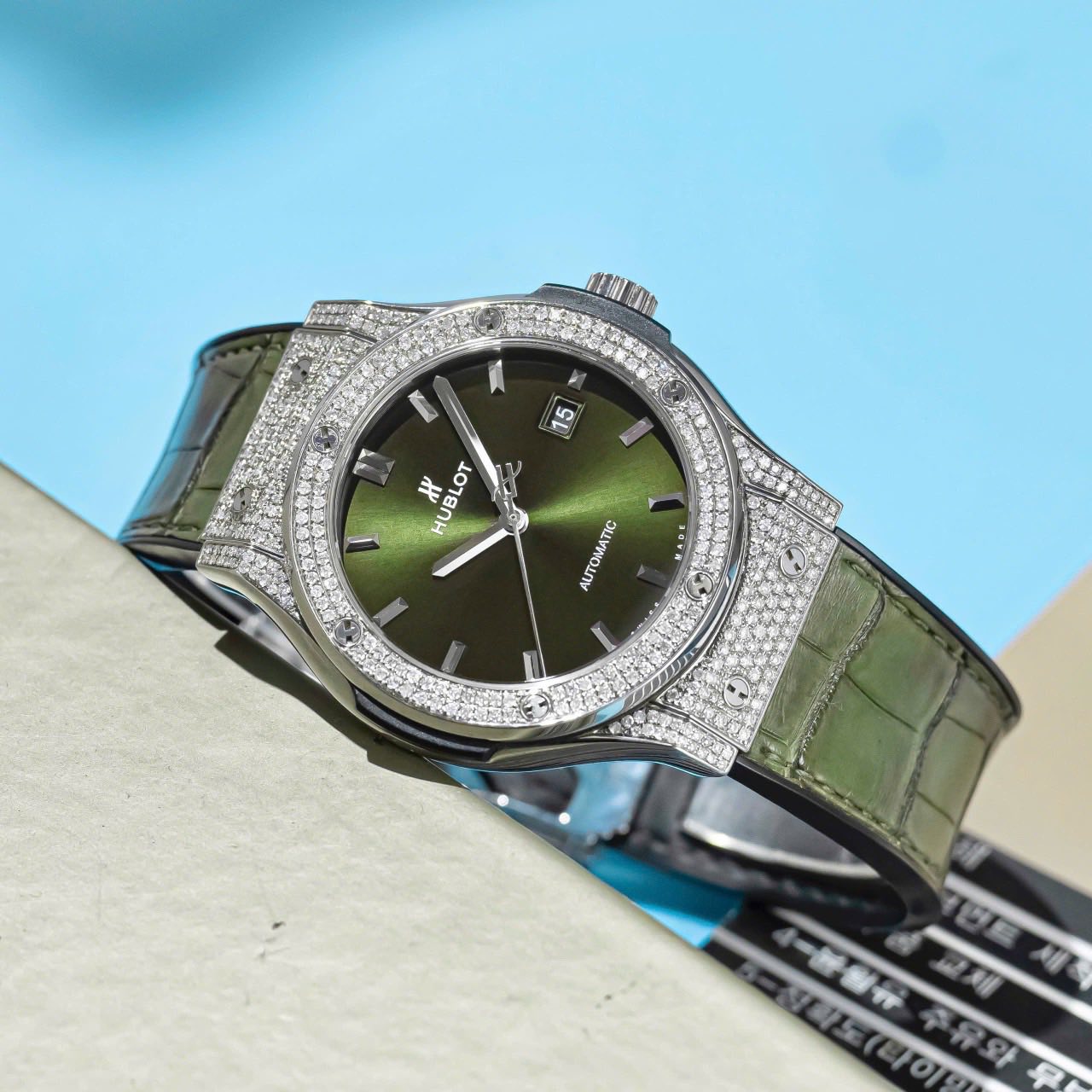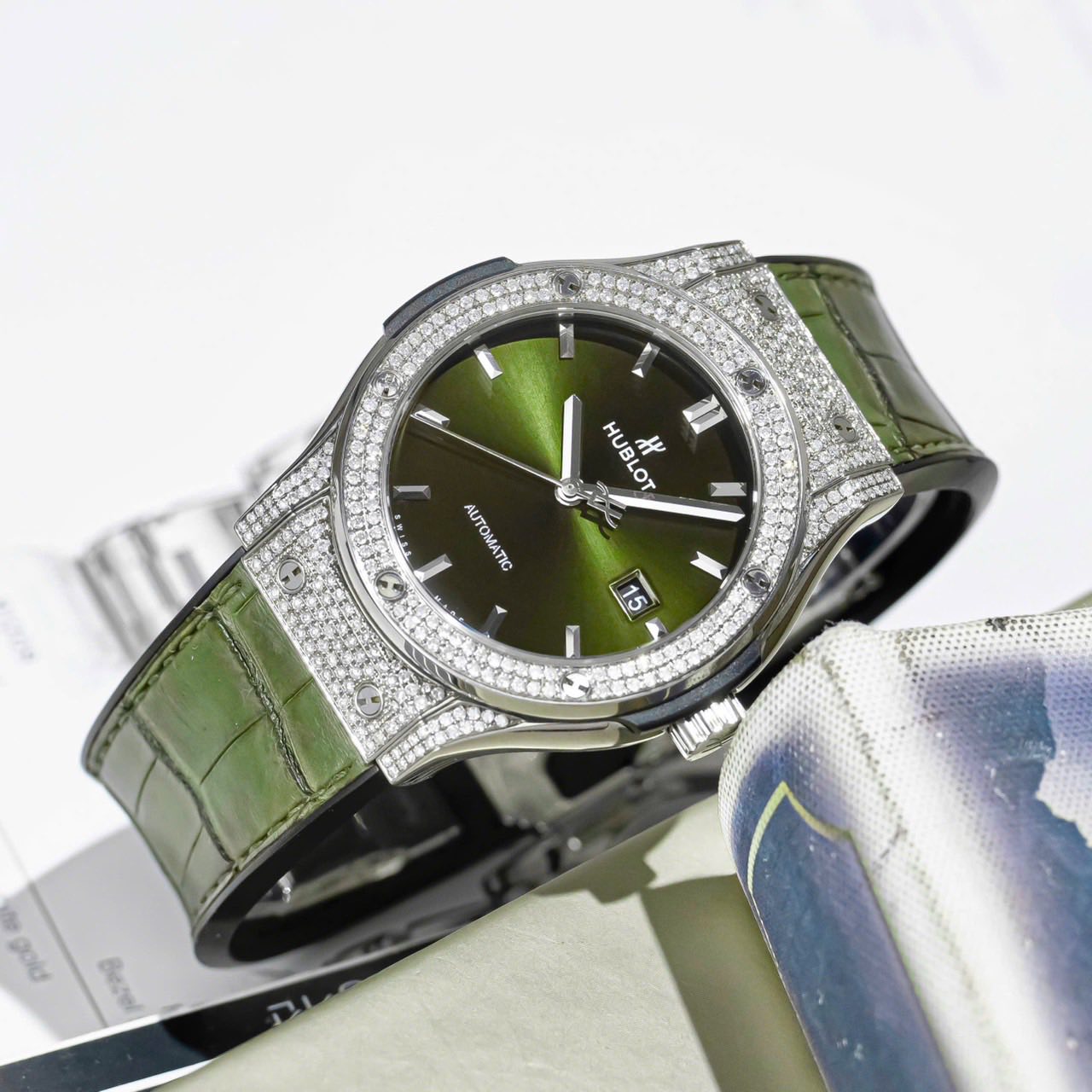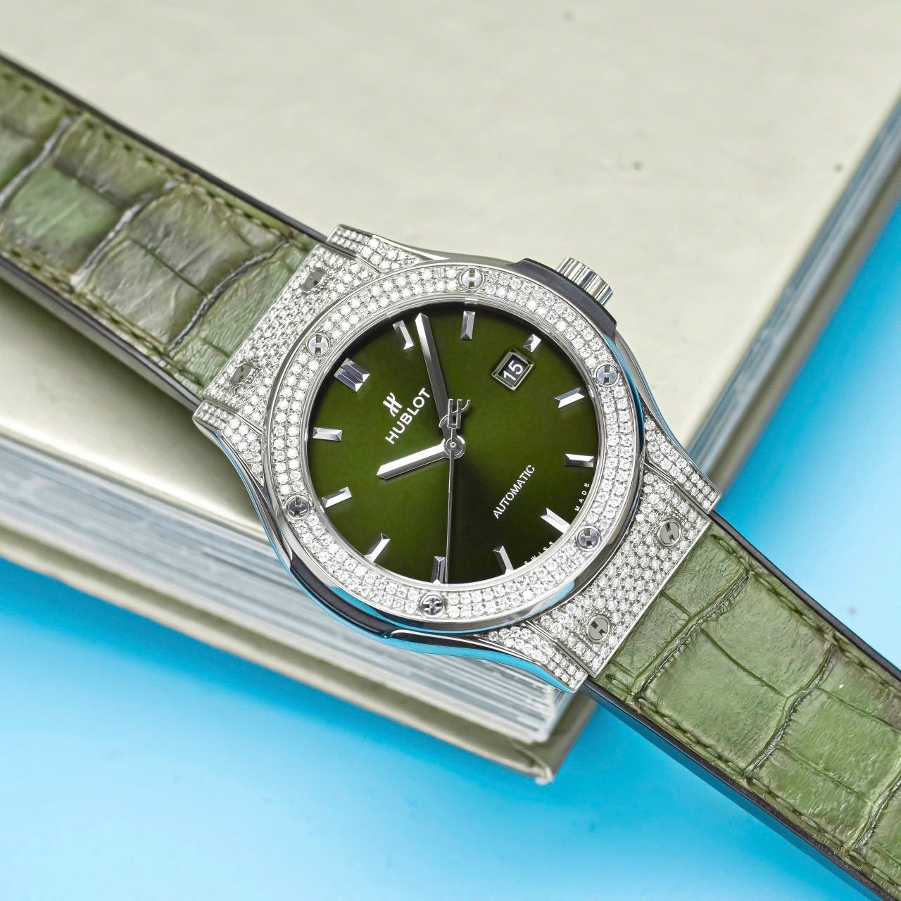 Hublot Classic Fusion Green Dial 42mm Full Kim Pavé