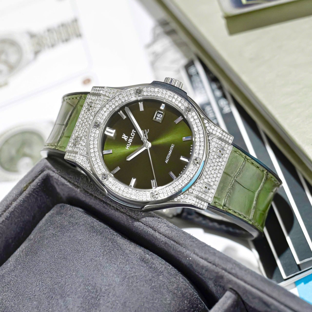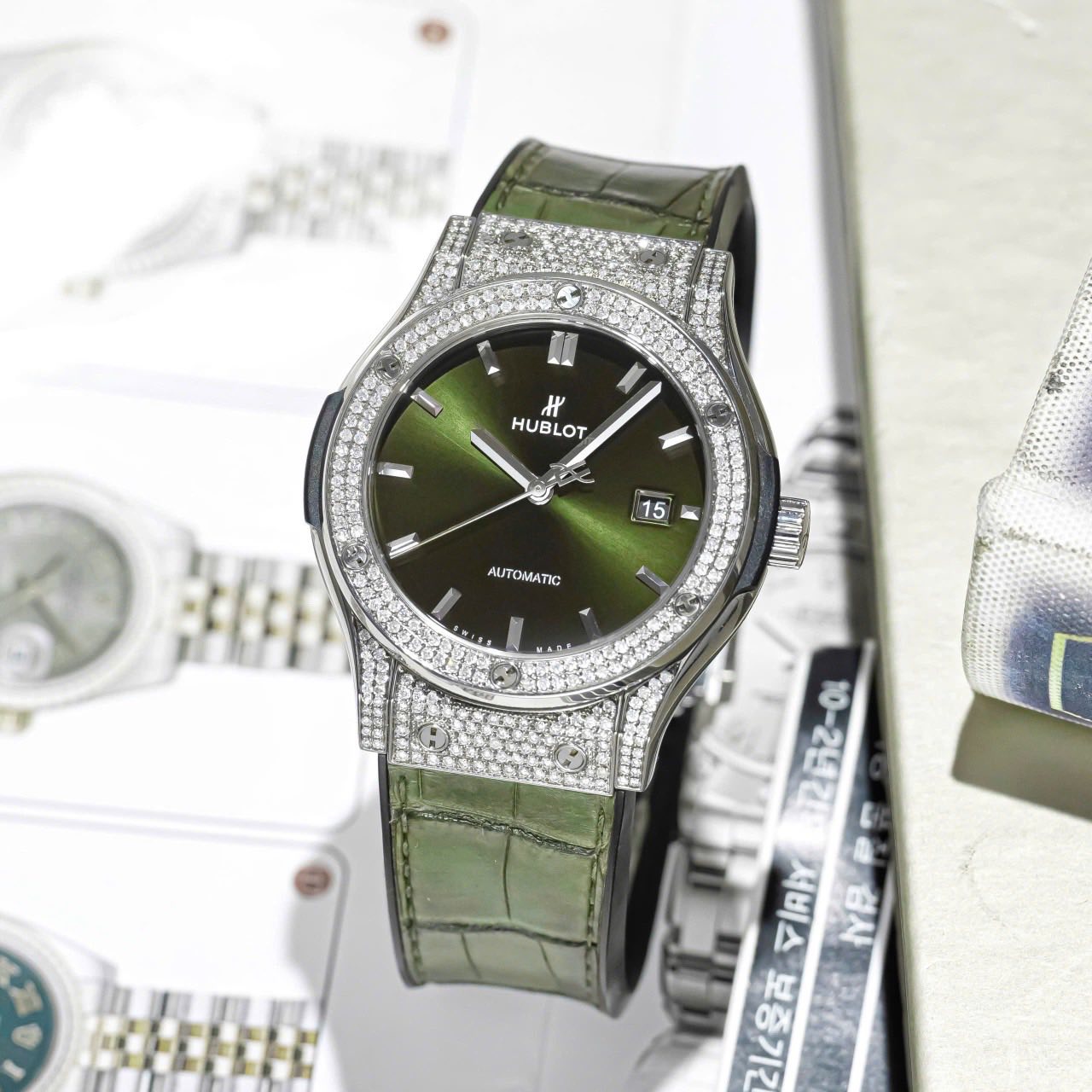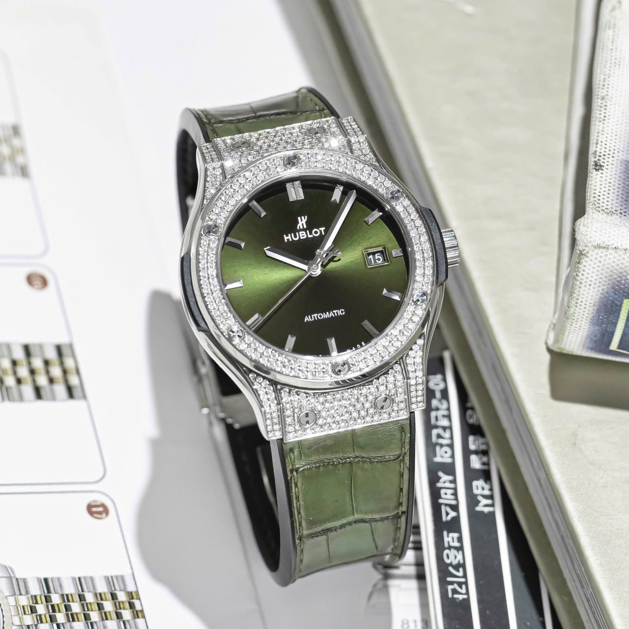Hublot Classic Fusion Green Dial 42mm Full Kim Pavé