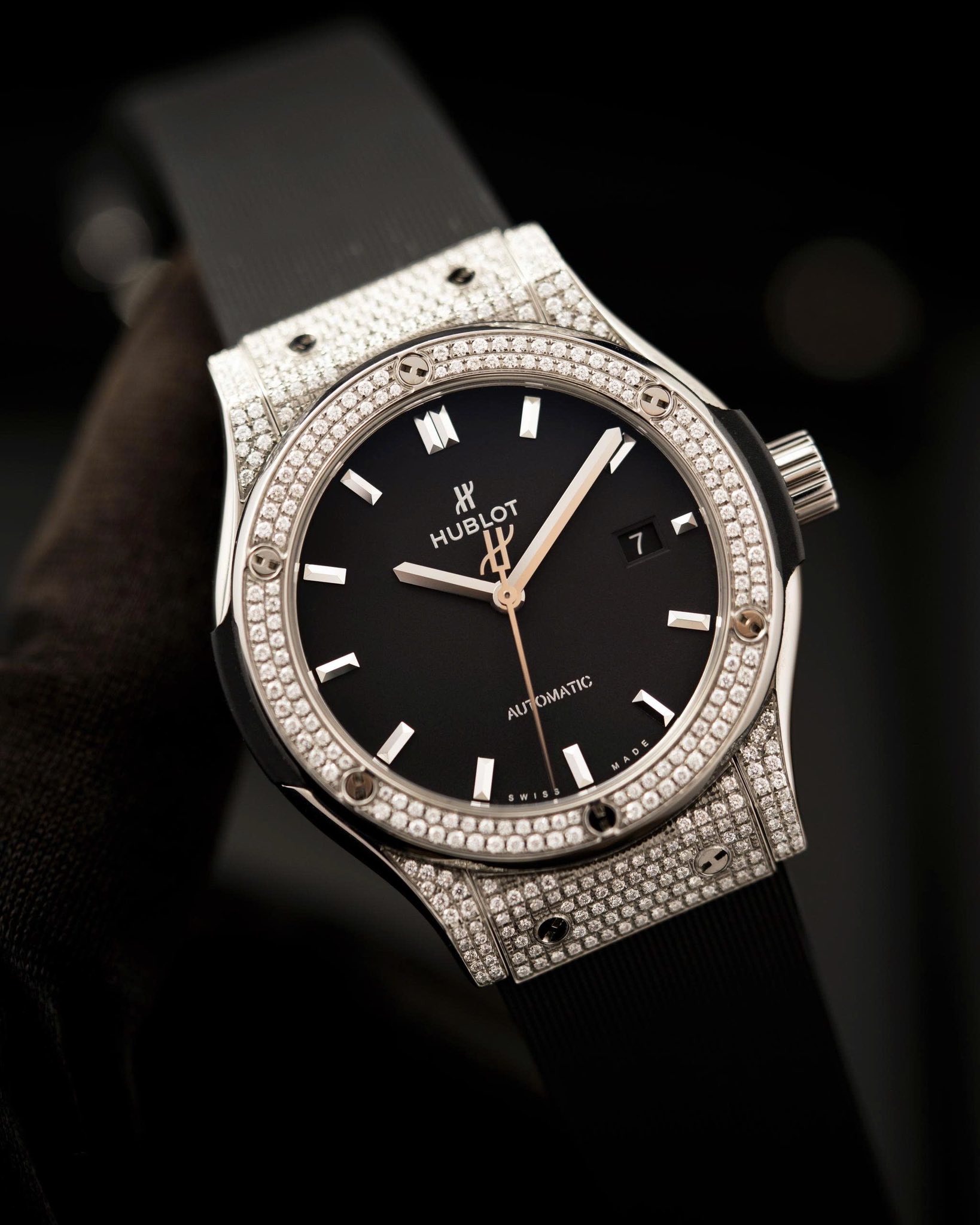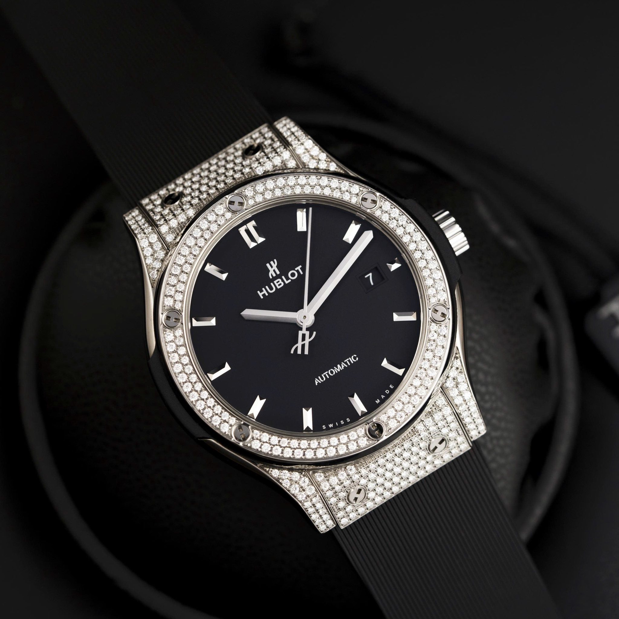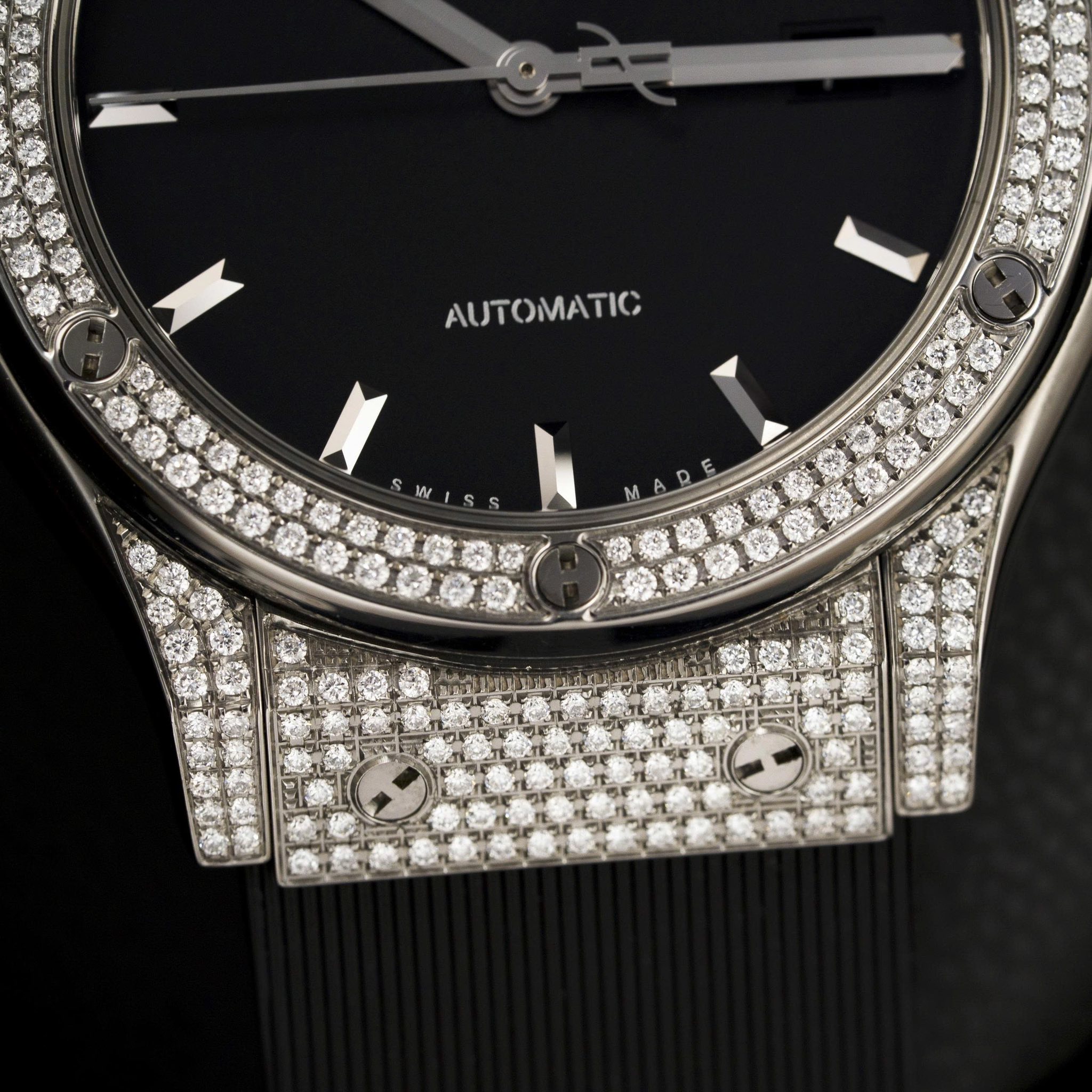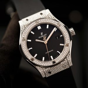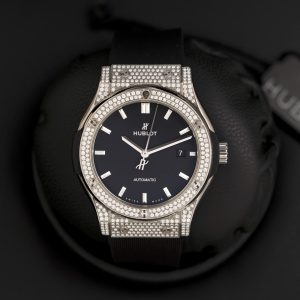 Phiên bản Classic Fusion nổi bật với thiết kế thanh lịch đặc trưng của Hublot, kết hợp cùng bezel đính kim cương pavé sang trọng tạo nên vẻ đẹp vừa thể thao vừa đẳng cấp.
