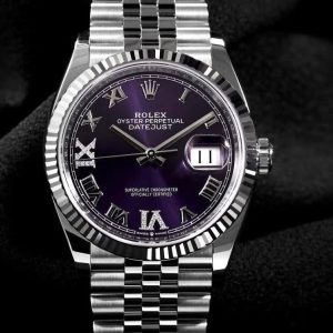 Rolex Datejust 36mm với mặt số tím (Purple Dial) là lựa chọn dành cho những ai tìm kiếm sự khác biệt nhưng vẫn giữ trọn nét thanh lịch đặc trưng của dòng Datejust.