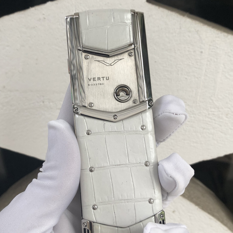Vertu Signature S White Mother Pearl là chiếc điện thoại cao cấp với mặt lưng ngọc trai trắng sáng bóng, tạo nên vẻ đẹp sang trọng và độc đáo.